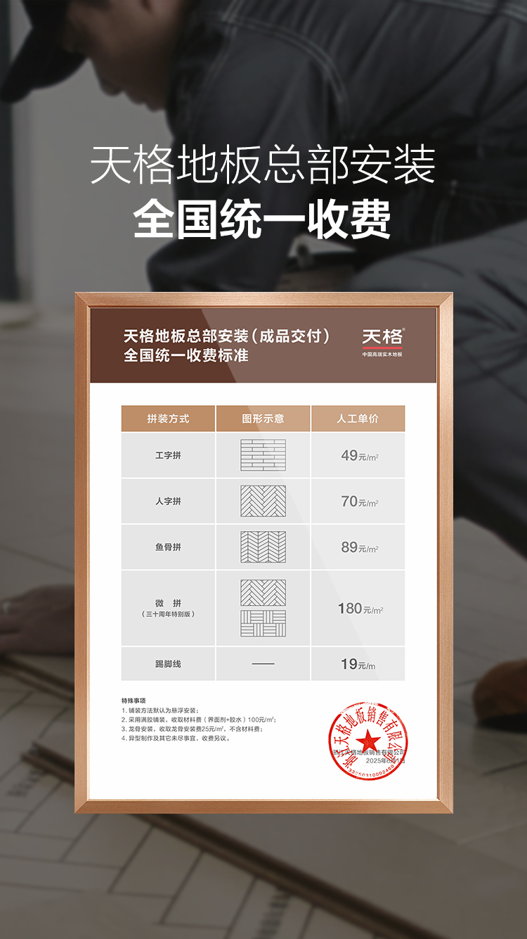 天格地板公布總部負責安裝(成品交付)全國統一收費標準